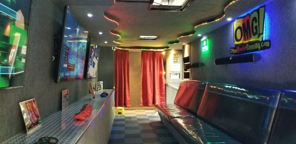 Our Akron Mobile Video Game Theater services Summit, Stark, Medina, South Portage Counties. The Akron gaming truck includes 4 interior and 1 outdoor gaming screens and all of the latest gaming systems from Nintendo, X-Box & PlayStation and optional photo booth area. The Akron gaming theater accommodates up to 20 players at once.